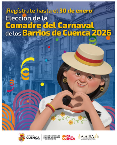 El 14 de febrero, la comadre electa y su corte participarán en el tradicional desfile de carnaval y en la gran fiesta del Mote Pata más grande del Ecuador, también en la Plaza del Otorongo. La Asociación de Artistas Profesionales del Azuay (A.A.P.A.) ofrecerá un espectáculo inolvidable desde las 12:00.