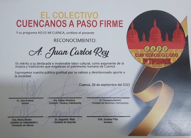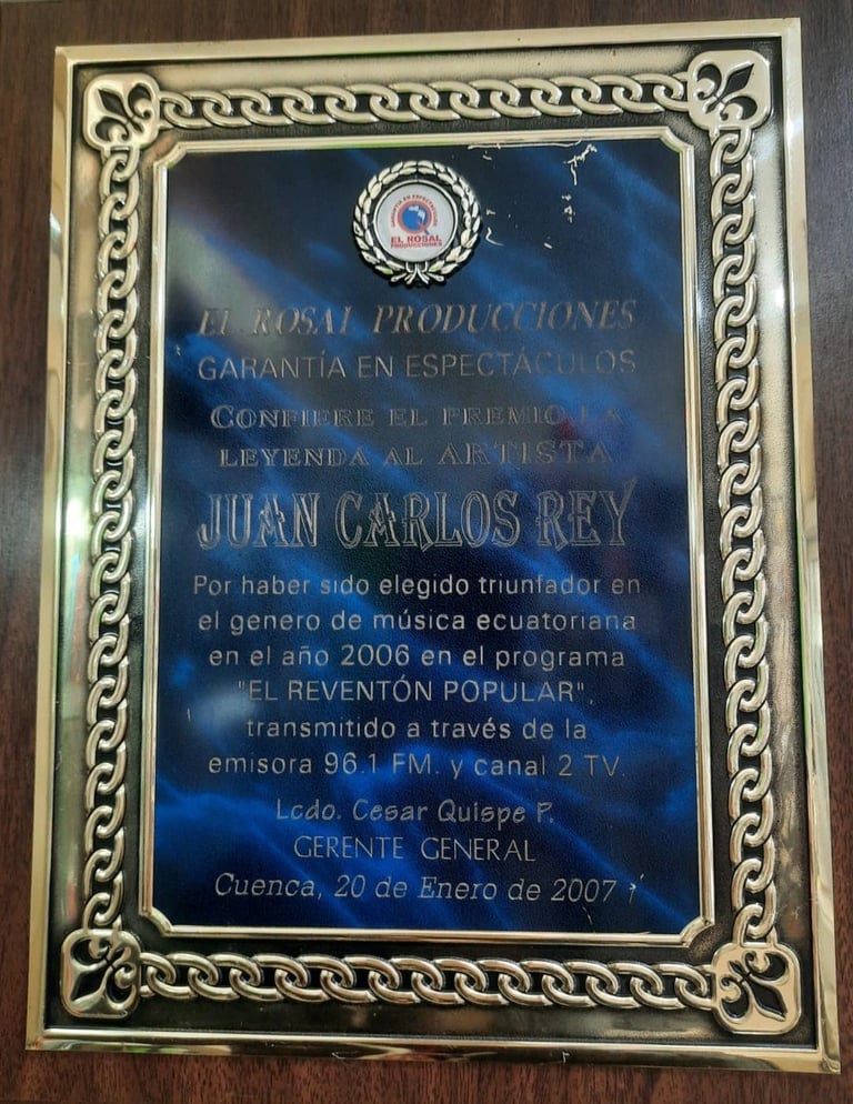 Juan Carlos Rey, reconocido guitarrista, cantante y compositor cuencano, es un artista cuyo talento musical se ha destacado desde su infancia. Nacido en una familia con una rica tradición musical, Juan Carlos desarrolló su pasión por la música desde muy joven, un don heredado que ha cultivado a lo largo de su vida.