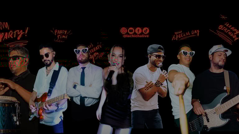 LA CHICHA LIVE, más que una banda musical, presenta una experiencia única y vibrante. Nuestro show combina los mejores éxitos musicales de diferentes géneros y décadas con un espectáculo impresionante de iluminación y pantallas led que darán vida a la música en su evento.